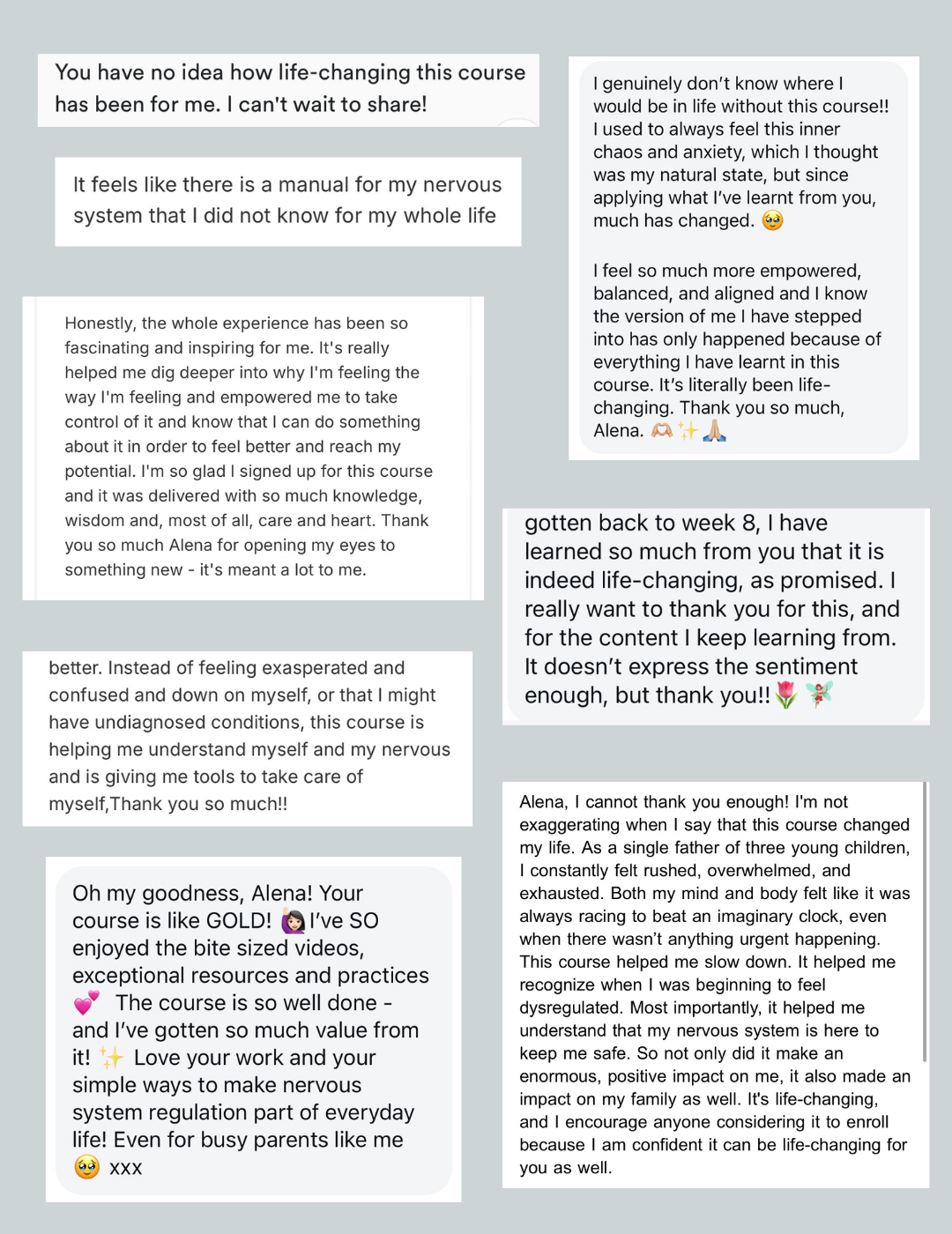 This information has truly changed my life, and the lives of so many of my clients and students. You'll finish the course with an operating manual for your nervous system that you can use for the rest of your life to support your mental & physical health.